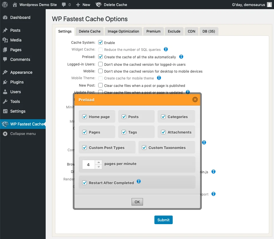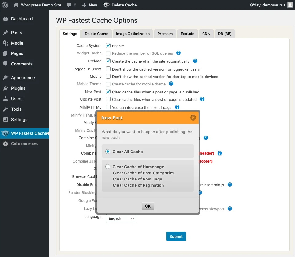 WordPress: Setting up WP Fastest Cache