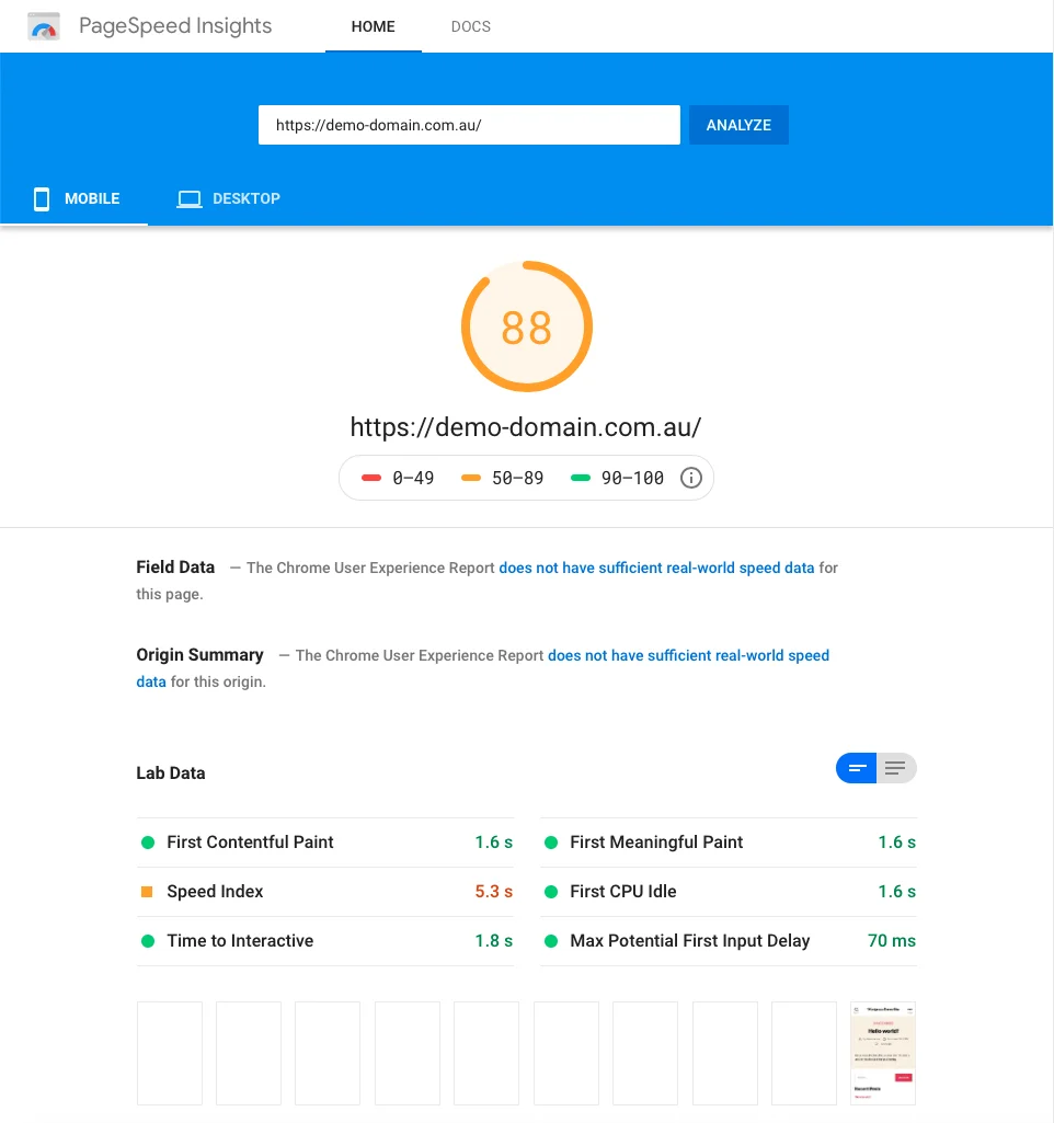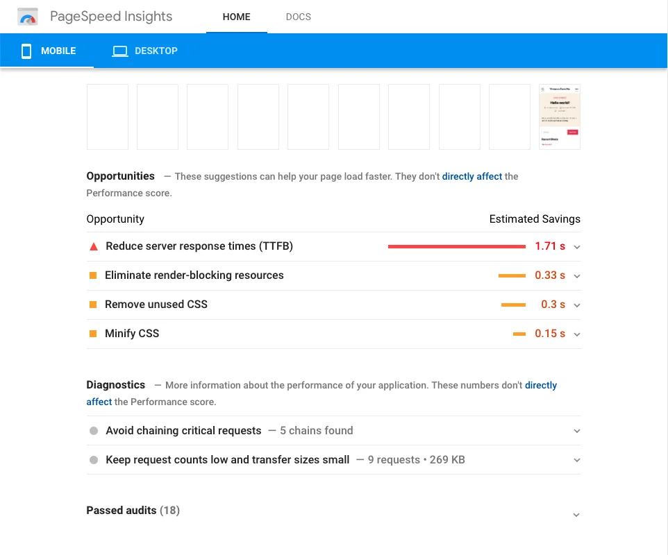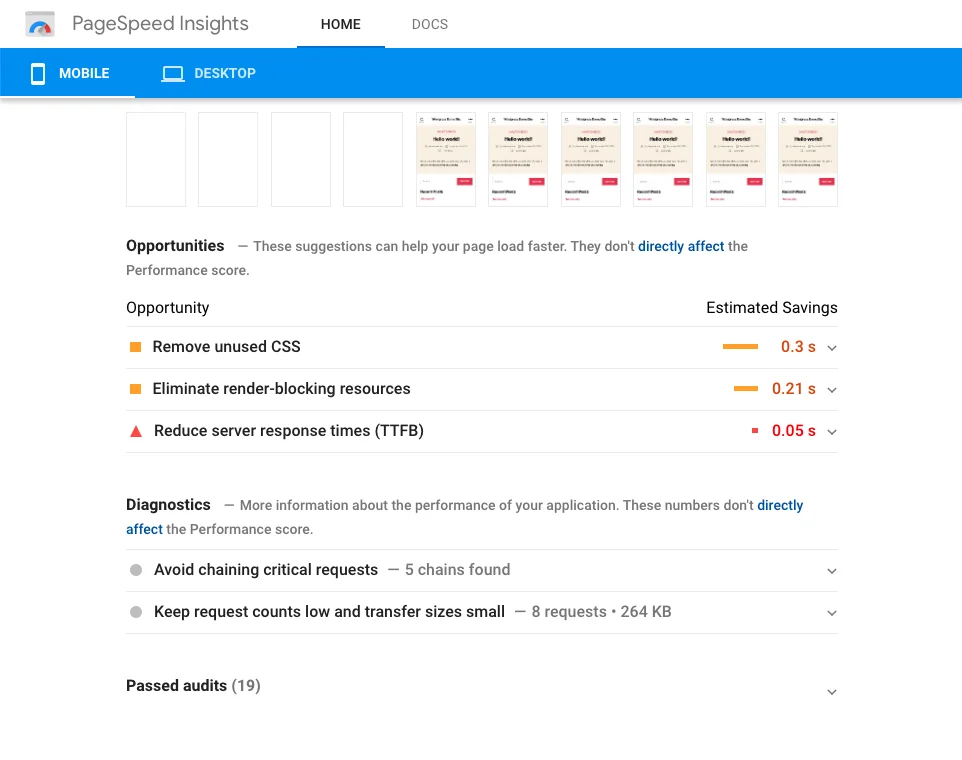 We ran a benchmark Google Pagespeed Insights test after installing a fresh copy of Wordpress. These were the results: